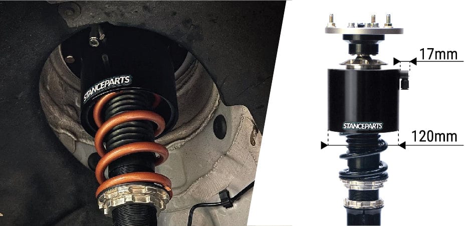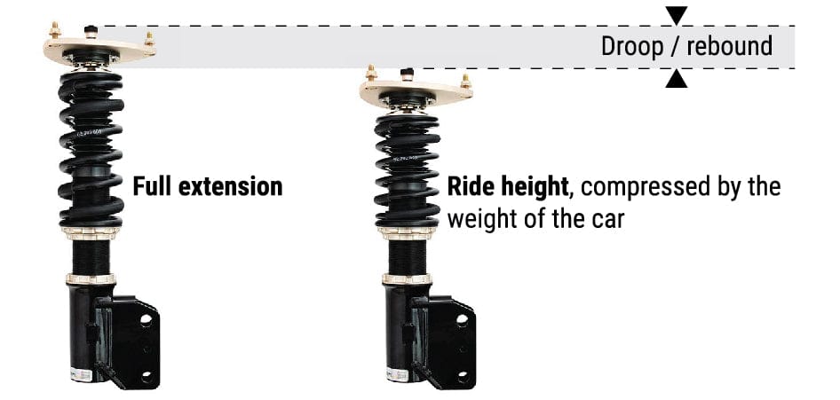 The lift from the air cups requires droop / rebound from the coilovers. If you don't have enough droop, the air cups can't lift the full 50mm. The damper strut simply will top out before achieving the full lift. If you're using the standard spring rates that came with your coilovers, it should be fine. If you're using higher spring rates we recommend to use helper springs to get the full lift.