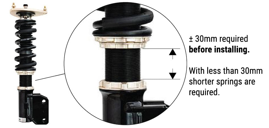 The custom rear cup will take 30mm of height, If there is enough thread left spring perch to lower the springs, it won't be a problem. If not, you will need to install shorter springs.