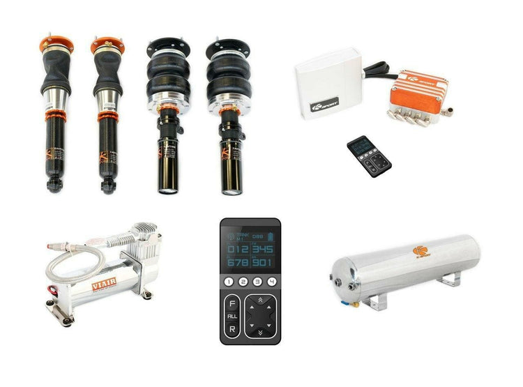 All KSport Airtech Systems feature high quality air bags, proven to handle the stress and abuse of daily driving as well as drift circuit use. Take advantage of the near infinite adjustability thanks to the adjustable lower mount, 36 levels of damping adjustment, and the unmatched height adjustability (0-120/200mm depending on vehicle) of air suspension. These air suspension kits are designed for easy bolt-on installation. No modifications to OEM shock absorbers, or OEM top mounts is required. Vehicle may need to be modified for air line routing. All KSport Airtech Systems use VIAIR compressors, and can be raised from the lowest setting to max height in as little as 2 seconds. All Hoses, wiring, and installation manuals are included.