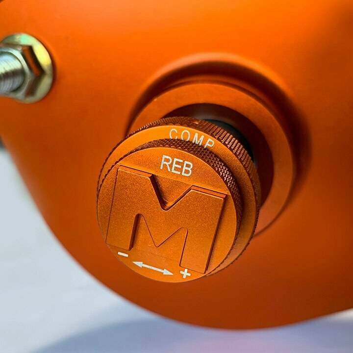 These are located on the top of the damper for easy access. The 22mm shaft together with our new low friction seals are set for fast responses and good feedback during massive sideload.