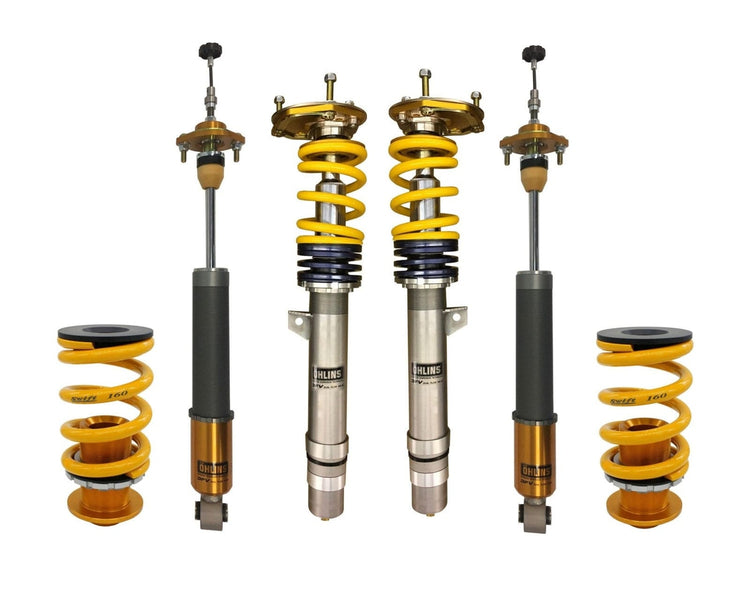 The Ohlins Dedicated Track Coilovers for the 2001-2006 BMW 3 Series (E46) program demonstrates Öhlins' ability to engineer capable trackday suspension packages tuned ready to install and hit the track with minimal setup/testing. Öhlins’ Dual Flow Valve technology (DFV) provides an uncompromised balance of chassis control and composer over rough sections of track and curbing. Driver confidence and precision are enhanced to a new level. Ride height and damping control are adjustable for the exact specifications desired from the driver. Systems feature monotube damper architecture for improved response with strengthened inverted struts and aluminum body shocks for lightweight and improved cooling effect. This combination of features and tuning result in the ultimate trackday bolt on suspension package.