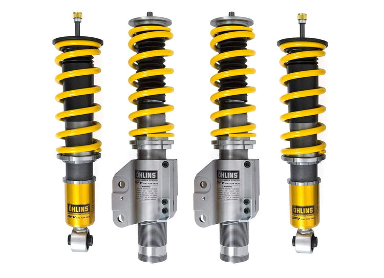With Ohlins Road & Track coilovers you will experience a car with blistering response times, improved bump absorption and a massive amount of grip to increase the safety when driving your car on the limit. The car will be easier to balance on the edge of what the tires can handle before losing grip. You will be much quicker on track. The DFV suspension prevents you from losing the racing line when hitting bumps or curbs. The DFV components within react quickly and keeps you in control of the car and in contact with the track. When driving to and from the track, just set the dampers in road mode for a more relaxed and comfortable drive, still with more grip and quicker response time than ever before.