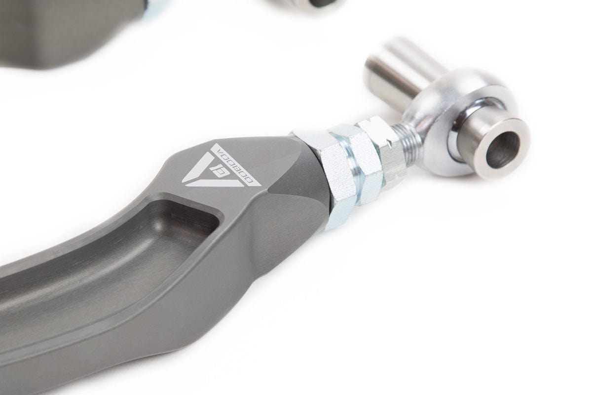 Voodoo13 S13/Z32/R32 GTS Front Adjustable Tension Rods are designed and engineered specifically for optimized shape and geometry for maximum steering angle. Precision CNC machined body from high strength 6061-T6 aluminum coated in MIL-A-8625 Type III Hard Anodize, CNC’d chromoly hardened steel adjuster, stainless steel CNC machined spacers and Grade 8 hardware are used to ensure they will withstand abuse from street cars and track cars alike.